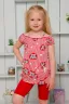 Майка детская летняя. Свободного А-силуэта на тонких бретелях. С двумя декоративными кармашками, на которых настрочены бантики из атласной ленты. Горловина и рукава собраны на кружевную резинку. Все срезы в изделии обработаны декоративной краеобметочной строчкой.