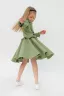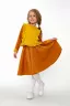 Костюм состоит из лонгслива и юбки, которые имеют узор в мелкий темный горошек. Выполнен из набивного футера, который легок в уходе и стирке. Костюм подойдет как для повседневной носки, так и для особых дней.
