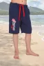 Шорты из футера с лайкрой для мальчиков. Принт в виде кроссовка и надписей, пояс со шнурком на резинке, боковые карманы, длина приблизительно до коленей. Две расцветки — серая и синяя. Размеры от 30 до 40. Возможен заказ товара в розницу.