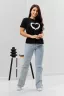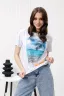 Футболка женская - это классика женского гардероба любой девушки. Это базовая модель с ярким принтом отлично смотрится с джинсами, юбками, брюками. Прямой силуэт, втачной рукав, горловина округлой формы обработана обтачкой из основного полотна.
