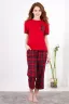 Отличный вариант для дачи, дома и летнего отдыха. Очень свободный крой. Футболка со спущенной линией плеча. На груди накладной карман, по низу рукавов манжеты. Свободные удлиненные бриджи, в боковых швах карманы.