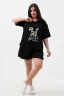 Представляем вам новинку - женский костюм-двойка, состоящий из футболки и шорт. Наряд состоит из свободной футболки-рубашки с однотонным принтом и шорт свободного кроя на резинке. Для удобства шорты имеют 2 кармана.