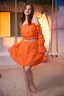 Молодежный костюм состоит из топа с открытыми плечами и с длинными рукавами, и мини юбки.