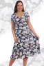 Легкое летнее платье из кулирки. Три варианта дизайна — пионы, орхидеи и сакура, рукава короткие, общая длина платья чуть ниже коленей. Размеры от 48 до 66.