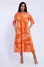 Платье женское свободного покроя. Воротник отложной рубашечного типа, образует V-образный вырез. Платье с карманами в боковых швах. Длина платья чуть выше щиколотки. Рукав 3/4 с манжетой, поднят патой.