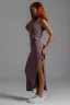 Длинное спортивное платье приталенного силуэта на тонких брительках.Мягкая ткань в рубчик обеспечивает комфорт.Идиальный вариант на каждый день или в отпуск,на море или путешествий и отдыха.Длинное сексуальное платье с разрезом идеально сочетается с любой спортивной обувью будь,то кросовки,кеды,сандали.
