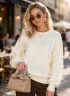 Джемпер оверсайз с рукавом-фонарик "Eco Cashmere Beige" арт. 2701 - джемпер из качественного материала «эко-кашемир» — мягкой акриловой пряжи премиум-класса, которая по своим тактильным ощущениям и внешнему виду практически неотличима от натурального кашемира. Эта модель идеально сочетает в себе комфорт, стиль и доступную роскошь. Особого внимания заслуживает бежевый цвет — универсальный, благородный оттенок, который стал настоящей классикой современного гардероба. Теплый бежевый тон прекрасно сочетается с любыми цветами: от классического черного и белого до ярких акцентных оттенков. Он освежает образ, добавляет ему мягкости и женственности, подходит абсолютно всем типам внешности. Главная изюминка модели — рукав-фонарик объемного кроя. Такая деталь придает джемперу романтичности и игривости, создавая актуальный силуэт в стиле современной классики. Объемные рукава собраны на эластичные манжеты с резинкой, что обеспечивает удобную посадку и комфорт в носке. Спущенная линия плеча и свободный крой по корпусу создают расслабленный, непринужденный образ. Круглый вырез горловины оформлен аккуратной резинкой, которая хорошо держит форму и не растягивается. По нижнему краю изделия также расположена эластичная резинка, обеспечивающая идеальную посадку. Материал «эко-кашемир» — это современная альтернатива натуральному кашемиру. Нежная, шелковистая пряжа мягкая на ощупь, абсолютно не колется и не вызывает раздражения даже у обладательниц чувствительной кожи. Джемпер можно смело носить на голое тело, наслаждаясь приятными тактильными ощущениями. Он сохраняет все преимущества: мягкость, тепло и уют, легче в уходе и долговечнее. Размер: единый 42-50. Универсальный оверсайз крой прекрасно смотрится на разных типах фигуры, создавая модный силуэт. Модель доступна в пяти актуальных оттенках: Светло-бежевый — нежный, воздушный оттенок, максимально приближенный к натуральным тонам Молочный — теплый кремовый цвет с мягким подтоном, идеальная альтернатива белому Бежевый — классический благородный оттенок, основа базового гардероба Серый — универсальный базовый тон, практичный и стильный одновременно Черный — вечная классика, которая никогда не выходит из моды Идеальный выбор для повседневной носки, работы, прогулок. Сочетается с джинсами, брюками, юбками любой длины. Создавайте стильные образы в стилях casual, romantic, feminine!