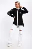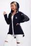 Туника необычного кроя на молнии, с капюшоном. Рукава длинные без манжетов, спинка длиннее переда. Карманы, рукава, капюшон и низ изделия обработан отделочной тканью. Принт на рукавах и полочке. Идеальное решение для прогулок, спорта или повседневного использования. Туника станет незаменимым элементом вашего гардероба.